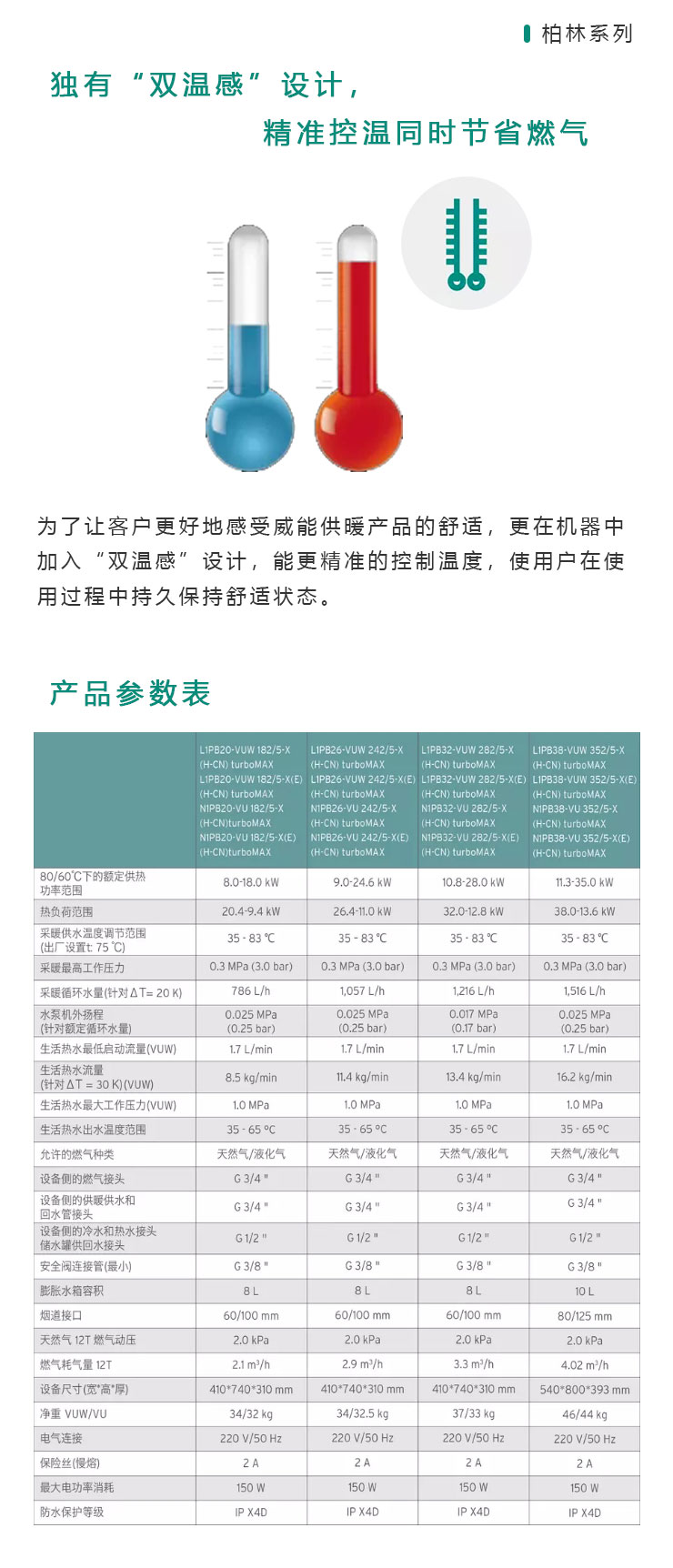 ● 外觀高檔大氣 ● 18,24,28,35kw兩用型及單功能型燃氣采暖熱水爐 ● 天然氣/液化氣兩用 ● 威能全球統一設計的中央處理器確保產品性能始終如一 ">