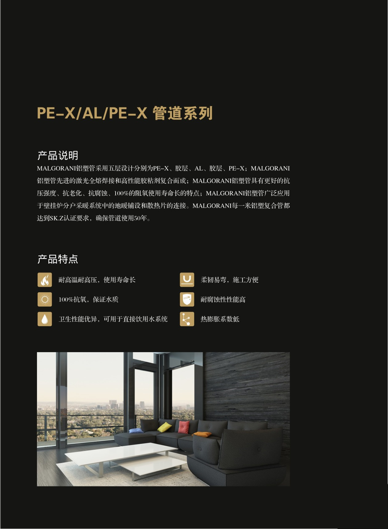 ● 耐腐蝕性性能高 ● 熱膨脹系數低,耐高溫高壓 ● 達到SK.Z認證要求,確保管道使用50年">