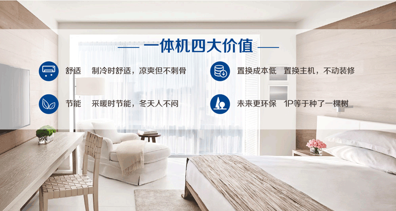 全集成(安裝簡單 維護(hù)時方便 使用時省心):水力組件高度集成,室內(nèi)風(fēng)機(jī)內(nèi)置二通閥,提升泵(可選)