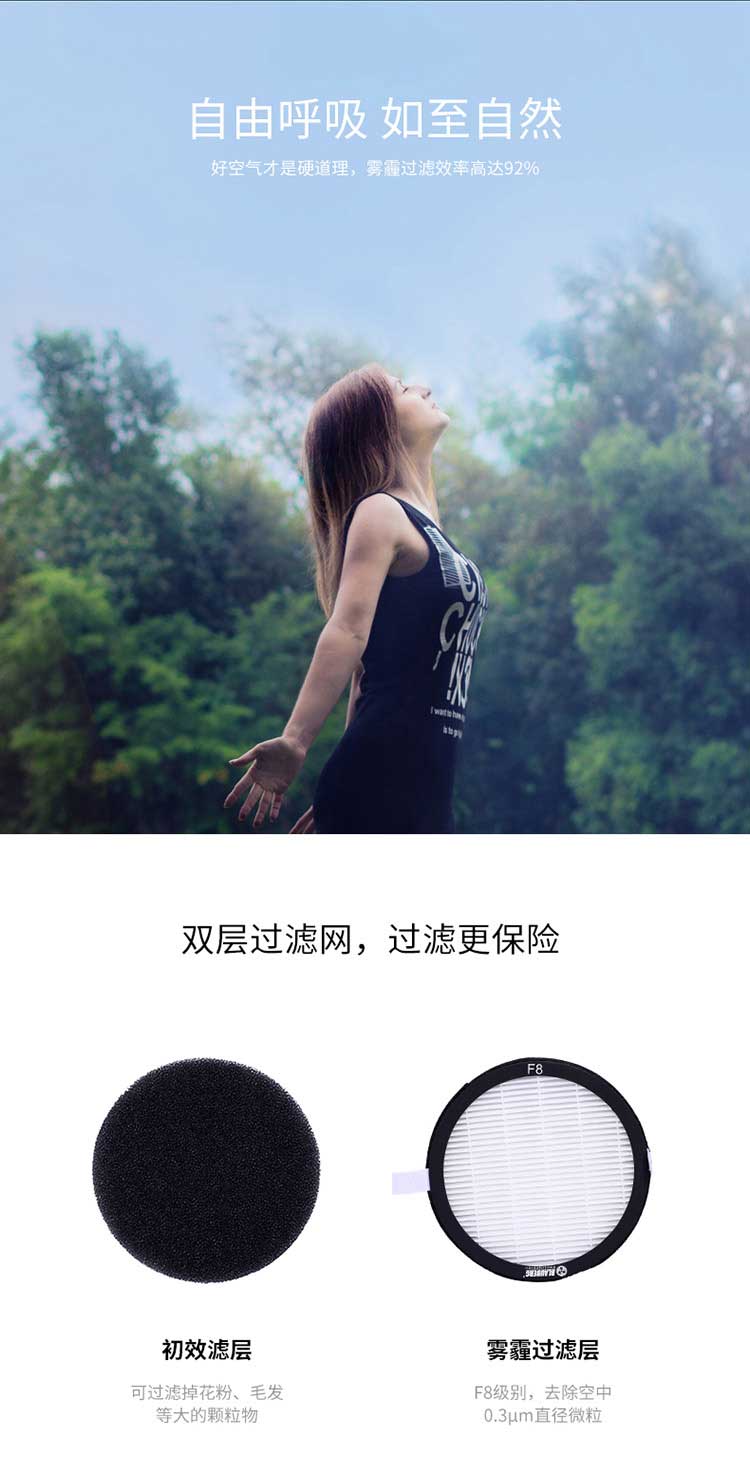 ● 污染物一網打盡,霧霾、汽車尾氣、工業廢氣、臭氧、甲醛、二手煙、花粉全線攔截