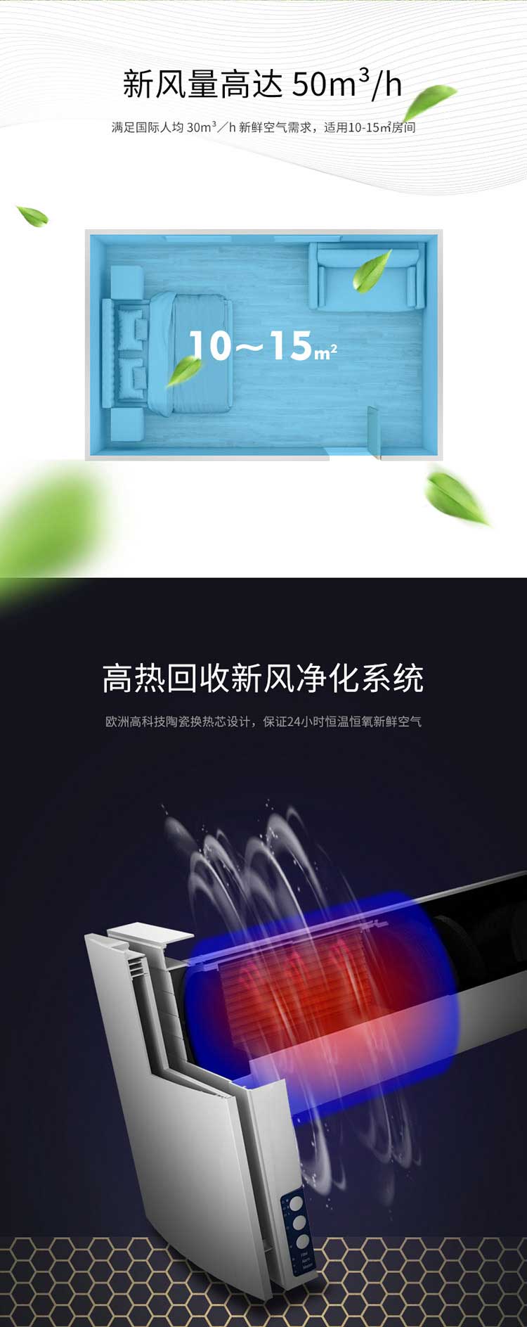● 使用空間10-15㎡,風量50m3/h